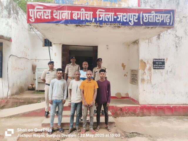 वरिष्ठ पुलिस अधीक्षक जशपुर श्री शशि मोहन सिंह के द्वारा घटना को तत्काल संज्ञान में लेते हुए, आरोपियों को तत्काल गिरफ्तार करने के निर्देश दिए गए ।जिस पर बगीचा पुलिस टीम के द्वारा त्वरित कार्यवाही करते हुए ग्राम सरडीह में दबिश देकर घटना में शामिल एक विधि से संघर्षरत बालक सहित सभी आठों आरोपियों को हिरासत में लिया गया।