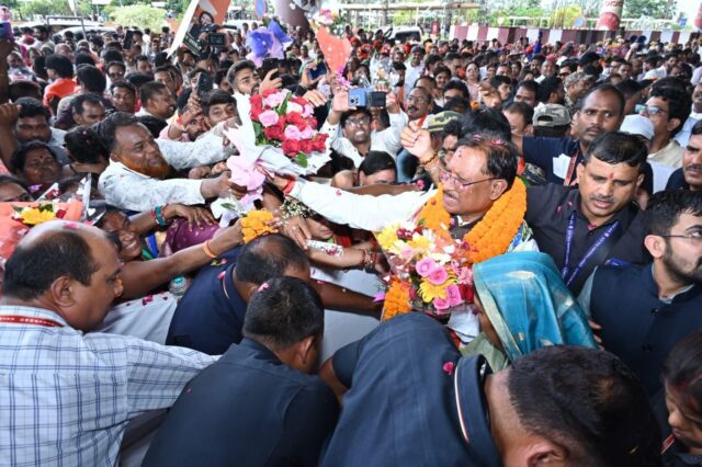 रायपुर। अपनी आठ दिन के जापान और दक्षिण कोरिया के विदेश दौरे के बाद आज मुख्यमंत्री श्री विष्णु देव साय वापस रायपुर लौटे हैं। श्री साय के वापस लौटने पर आज एयरपोर्ट पर उनका भव्य स्वागत किया गया। छत्तीसगढ़ के पारंपरिक कर्मा और पंथी नृत्यों से पूरा एयरपोर्ट परिसर लगभग एक घंटे तक सराबोर रहा। लोगों की बड़ी संख्या में मौजूदगी ने मुख्यमंत्री श्री साय की लोकप्रियता और उनके विदेश दौरे की सफलता को स्वयं ही बयां कर दिया। मुख्यमंत्री का पुष्प गुच्छों से लेकर गजमाला तक से स्वागत किया गया। एयरपोर्ट के निकास द्वार से मीडिया गैलेरी तक लगभग 100 मीटर की दूरी तय करने में श्री साय को लगभग 15 मिनट लगे। इस दौरान लोगों ने पुष्प वर्षा से भी श्री साय का स्वागत किया। बाद में मुख्यमंत्री ने उपस्थित जनसमुदाय को सम्बोधित किया और इस भव्य स्वागत के लिए सभी का आभार जताया। मुख्यमंत्री ने कहा कि जापान और दक्षिण कोरिया दोनों ही देशों में बड़ा भारतीय समुदाय बसा हुआ है और हमारे छत्तीसगढ़ के लोग भी वहां पर व्यापारिक कार्यों में लगे हुए हैं। उनसे मिलकर मुझे बहुत अच्छा महसूस हुआ और यह लगा ही नहीं कि हम परदेश में हैं। उन्होंने कहा कि हमारे उद्यमी, हमारे कारोबारी पूरी दुनिया में फैले हुए हैं और भारत भूमि का नाम हर तरफ रोशन कर रहे हैं।