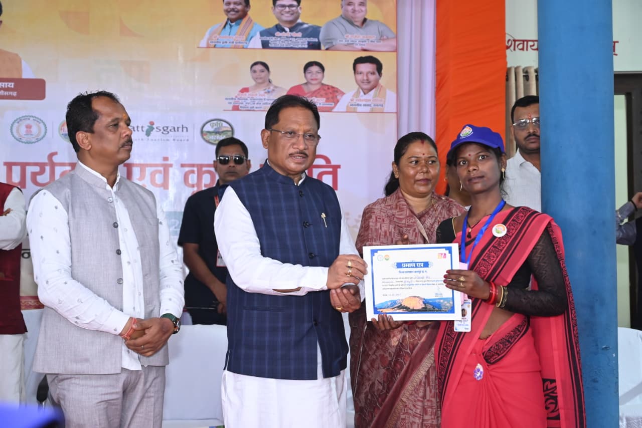 मुख्यमंत्री श्री विष्णु देव साय ने रविवार को मुख्यमंत्री कैम्प कार्यालय जशपुर में कार्यकम को सम्बोधित करते हुए कहा कि छत्तीसगढ़ विकास के क्षेत्र में निरंतर आगे बढ़ रहा है प्रधानमंत्री श्री नरेन्द्र मोदी ने सबका साथ सबका विकास को चरितार्थ कर रहे हैं। मुख्यमंत्री ने जशपुर जिले में पर्यटन के क्षेत्र में कार्य करने वाले स्व-सहायता समूह और युवाओं को प्रमाण पत्र देकर सम्मानित किया।
