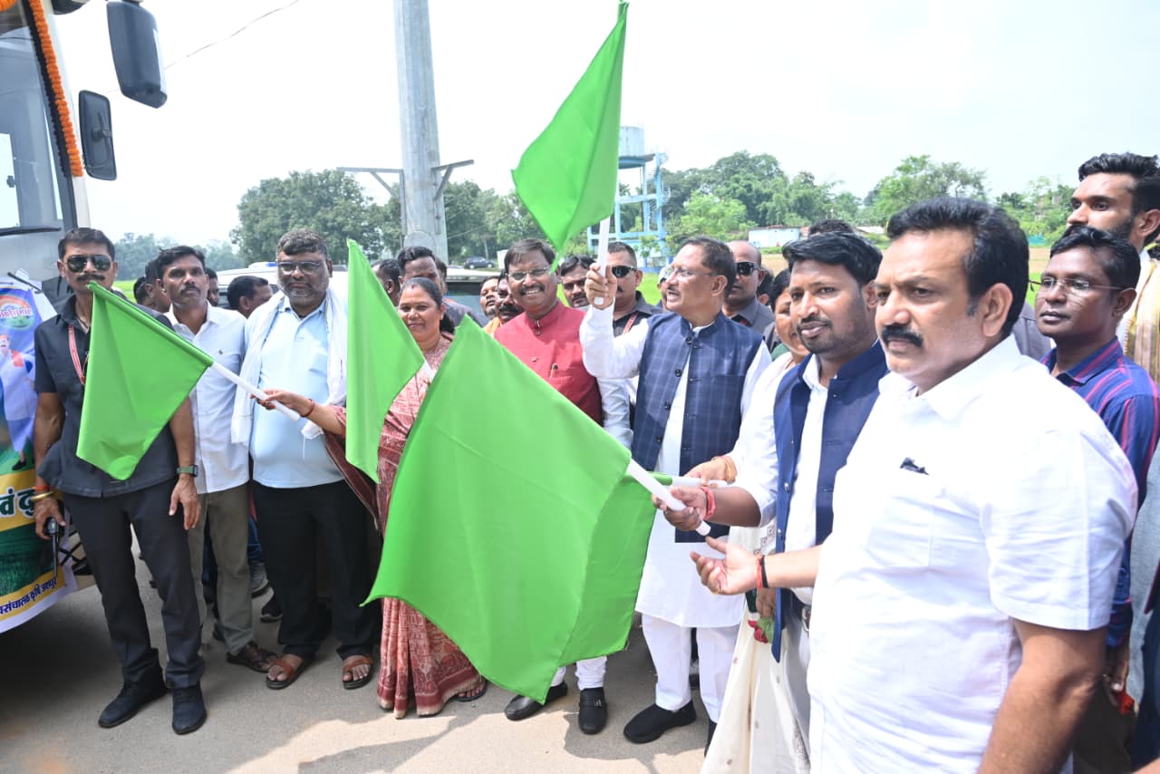 किसानों को नवाचारी कृषि और कृषि के विकास हेतु प्रोत्साहित करने के लिए कृषि क्रांति एवं आत्मा योजनांन्तर्गत 35 कृषकों के दल को रायपुर एवं दुर्ग के शैक्षणिक भ्रमण हेतु मुख्यमंत्री श्री साय द्वारा हरी झंडी दिखा कर रवाना किया गया। इसमें कुनकुरी के 15 एवं कांसाबेल के 20 किसान शामिल हैं। यह किसान वहां जाकर वैज्ञानिक पद्धति से खेती और खाद्य प्रसंस्करण के विषय में जानकारी प्राप्त करेंगे, जिसे वे जिले में आकर अपना सकेंगे। बीएनआर सीड रायपुर एवं इंडस मेगा फूड पार्क रायपुर द्वारा इस भ्रमण में कृषकों को जानकारी प्रदान की जाएगी।