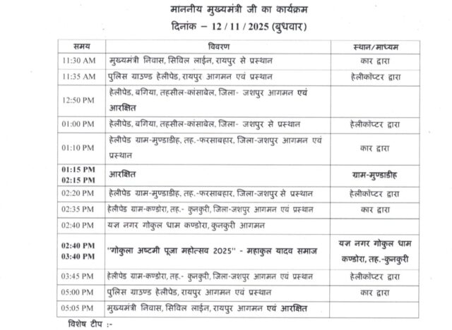 जशपुर।महाकुल यादव समाज के तत्वावधान में आयोजित गोकुलाष्टमी पूजा महोत्सव इस वर्ष अपनी शताब्दी वर्षगांठ पर विशेष रूप से मनाया जाएगा। यह ऐतिहासिक आयोजन 12 नवम्बर 2025, दिन बुधवार को बड़े ही श्रद्धा और भव्यता के साथ गोकुला धाम कंडोरा कुनकुरी में संपन्न होगा।इस कार्यक्रम के मुख्य अतिथि विष्णु देव साय एवं समस्त विशिष्ट अतिथियों के गरिमामयी उपस्थिति में सम्पन्न होगा।आयोजन समिति ने बताया कि आस्था, एकता और संस्कृति का अद्भुत संगम आयोजन की भव्य तैयारी की जा रही है।गोकुलाष्टमी पूजा महोत्सव का यह शताब्दी वर्ष यादव समाज के लिए गर्व और श्रद्धा का अवसर होगा। इस दौरान धार्मिक अनुष्ठान, भजन-कीर्तन, सांस्कृतिक प्रस्तुतियाँ और समाज सेवा से जुड़े कार्यक्रमों का आयोजन किया जाएगा।समाज के वरिष्ठजनों ने बताया कि यह आयोजन समाज की परंपरा, संस्कृति और भक्ति भावना का प्रतीक है।इस भव्य उत्सव में पूरे प्रदेश भर से हजारों श्रद्धालु और समाजजन शामिल होंगे।