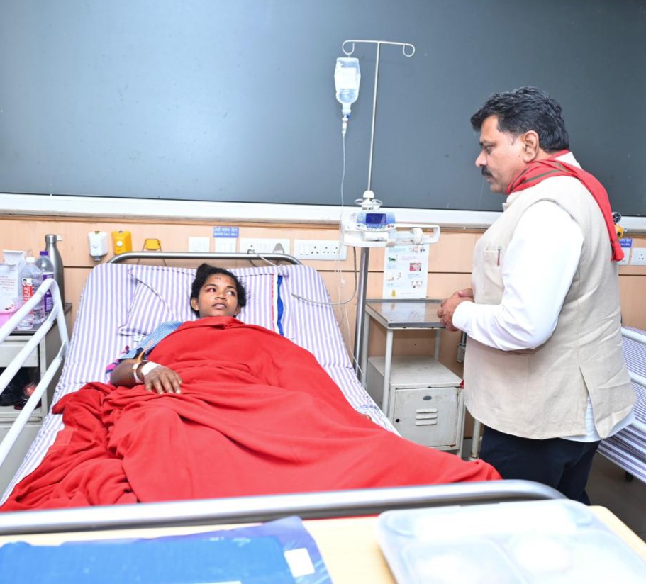 रायपुर। सुकमा जिले में गुरुवार को आईईडी ब्लास्ट में गंभीर रूप से घायल जिला पुलिस बल की महिला कांस्टेबल सुश्री मुचाकी दुर्गा के स्वास्थ्य की जानकारी लेने उपमुख्यमंत्री एवं गृहमंत्री श्री विजय शर्मा रायपुर स्थित रामकृष्ण हॉस्पिटल पहुंचे। उन्होंने घायल महिला कांस्टेबल सुश्री दुर्गा से मिले और उनके स्वास्थ्य की जानकारी ली। इस दौरान उपमुख्यमंत्री ने चिकित्सकों से चर्चा की और कांस्टेबल सुश्री दुर्गा का हरसंभव बेहतर इलाज करने के निर्देश दिए। चिकित्सकों ने बताया कि सुश्री मुचाकी दुर्गा की स्थिति खतरे से बाहर हैं। गंभीर चोटों के कारण उन्हें स्वस्थ होने में समय लगेगा।